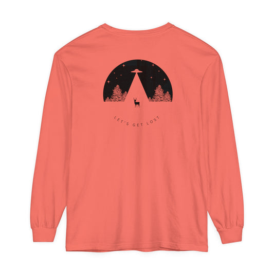 Adult Long Sleeve Tee Let's Get Lost UFO In The Woods in Comfort Colors