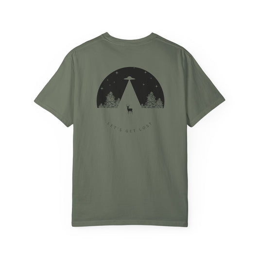 Adult Short Sleeve Tee Let's Get Lost UFO In The Woods in Comfort Colors