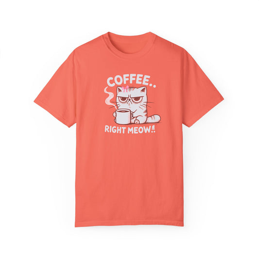 Adult Short Sleeve Grumpy Cat Needs Coffee Right Meow! Coquette Bow Style, Funny and Cute Tee